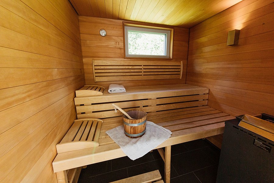 | Wellness: | Schöne Außensauna für bis zu 4 Personen mit Ofen für Finnen- und Biosaunabetrieb und wind- und regengeschütztem Vorraum mit Kleiderhaken / Außendusche mit kaltem und warmem Wasser |