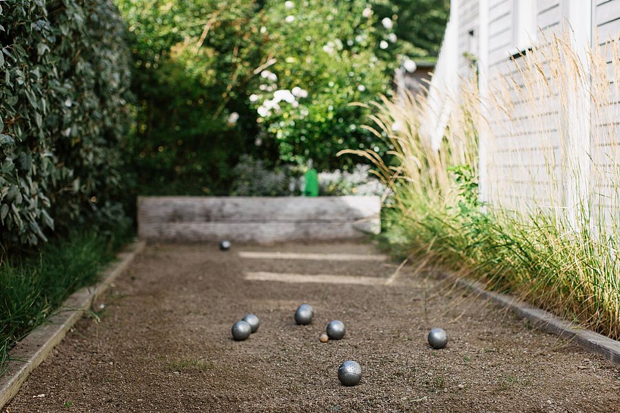 | Auf dem Grundstück | Boule-Bahn (französische obut-Kugeln sind im Haus), Bolzen, Slacklinen |